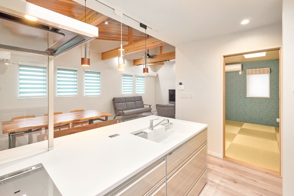 • キッチンと食器類はご自由にお使いください。使い終わったら必ず洗って戻してください。施設内での調理は配備している調理器具以外は使わないで下さい。また、食材を持ち込んだ場合は、冷蔵庫などに置きっぱなしにしないでください。